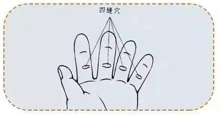 四缝穴每只手只有4个,因它位于掌心朝上,从食、中、无名、小指指尖朝下数,第二个关节的横纹中央,故称“四缝”。揉搓这8个穴位时,要有一定的力度。可用自己的大拇指指腹在上,食中指在下,沿着孩子的小手指,一直揉捏到食指,每个穴位揉40次左右。